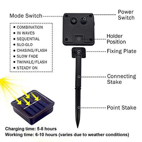 - تعمل بالطاقة الشمسية: فوانيس الحديقة الشمسية هذه تشحن تلقائيًا تقريبًا 5-8 ساعات من الشحن وفي الليل تعمل تقريبًا 6-10 ساعات. لا حاجة لاستبدال البطاريات، لا توجد مقابس خارجية / داخلية، أمان أعلى