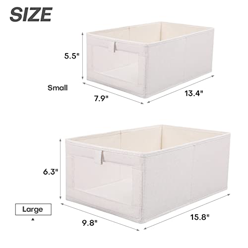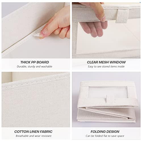 LaMorée - صندوق تخزين قماشي مستطيل من لاموري مصنوع من القطن والكتان مع لوح سميك من البولي بروبيلين ونافذة شبكية شفافة قابلة للطي لديكور غرفة الأطفال والمنزل والمكتب - بيج، مقاس L