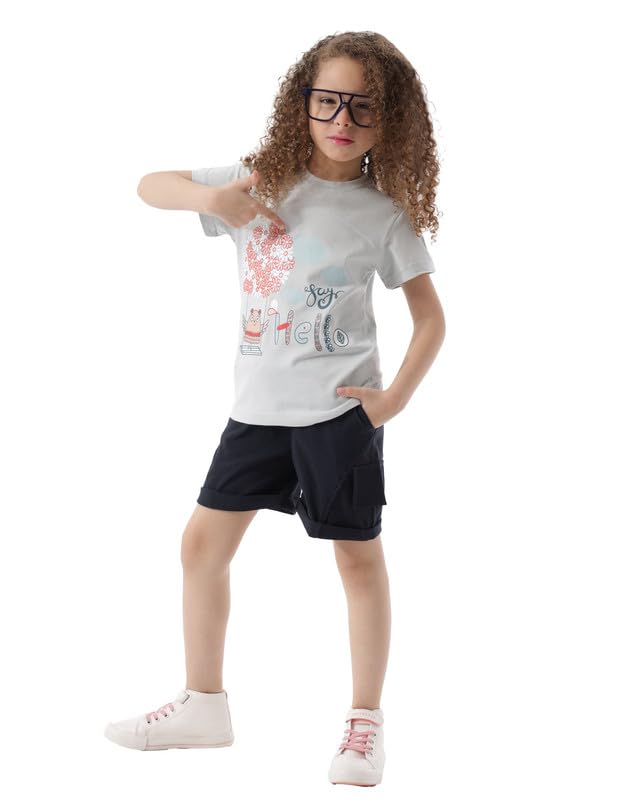 LAMOUR - طقم مكون من قطعتين مكون من تيشرت باكمام قصيرة وشورت للبنات من لامور - 1114