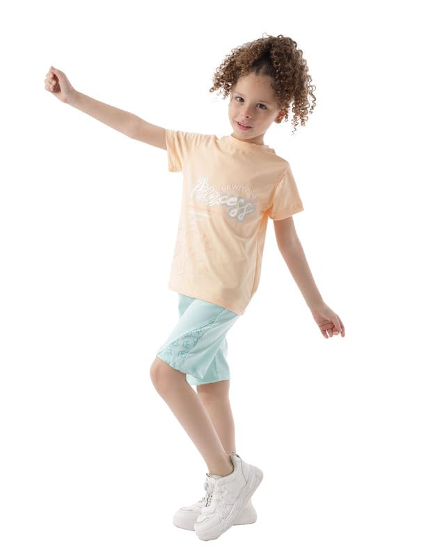 LAMOUR - طقم 2 قطعة 1112 من تيشرت بأكمام قصيرة وشورت للبنات من لامور