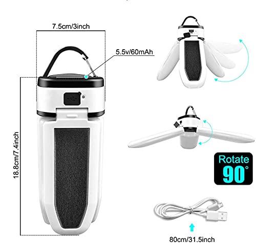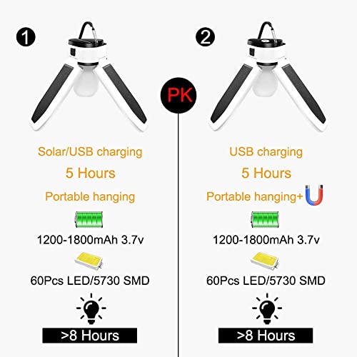 - شحن USB وإضاءة بالطاقة الشمسية: يمكن شحن مصباح التخييم عبر منفذ Micro USB حوالي 3.5 ساعة ليُشحن بالكامل. في حالات الطوارئ بالخارج التي لا يوجد فيها منفذ أو مصدر طاقة، يمكن للوحة الشمسية في الأعلى دعم الشحن.