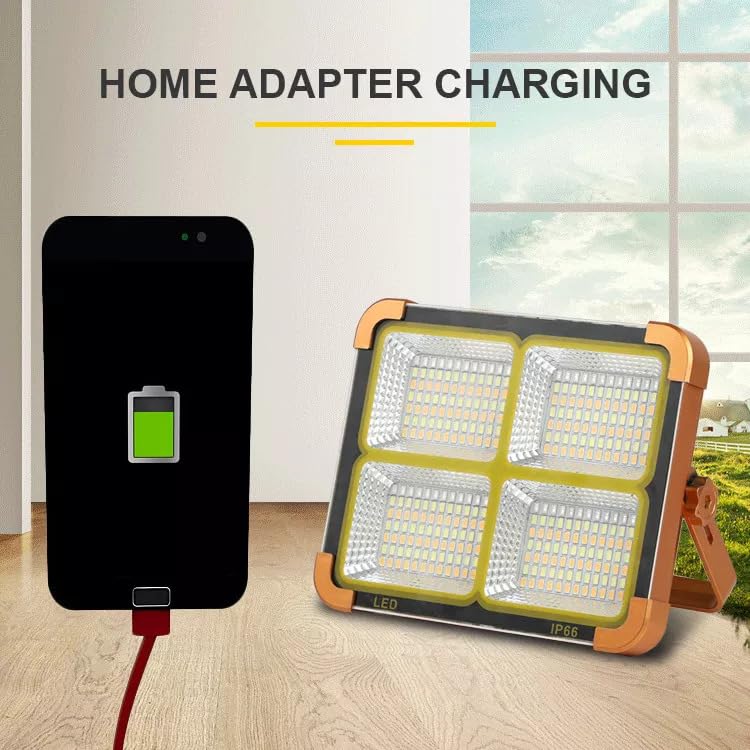 Generic - مصباح تخييم وعمل مقاوم للماء IP66 لشحن الموبايل بعمل بالطاقة الشمسية – كاشف ليد شمسي فائق السطوع مع 4 أوضاع إضاءة وحامل، قابل لإعادة الشحن عبر USB للاستخدام الخارجي