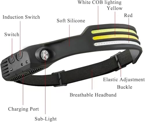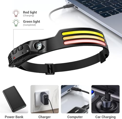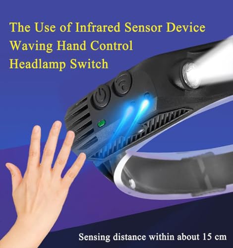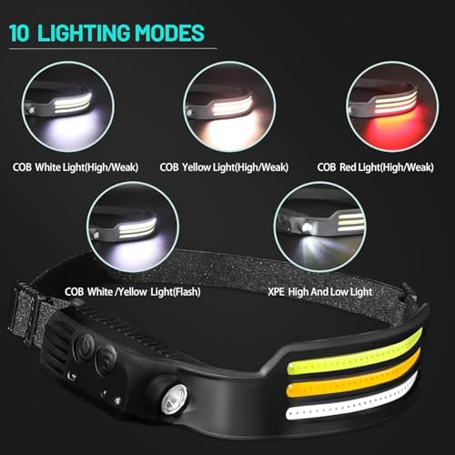 Generic - مصباح رأس مستشعر حركة 1500 لومن مقاوم للماء، مصباح رأس للتخييم والجري والمشي لمسافات طويلة وصيد الأسماك ومناسب للحمل اليومي، 10 أوضاع إضاءة