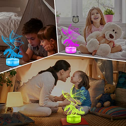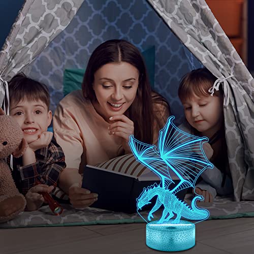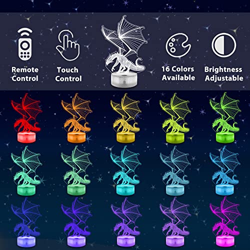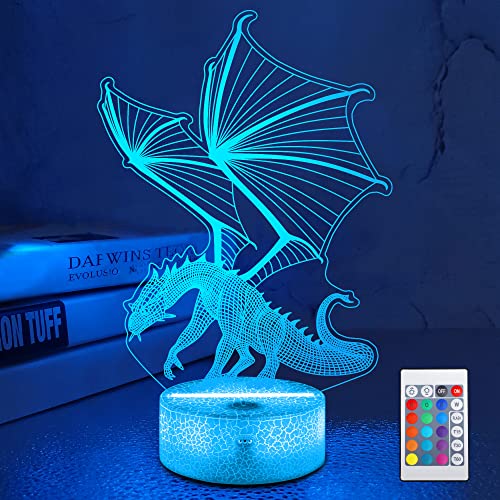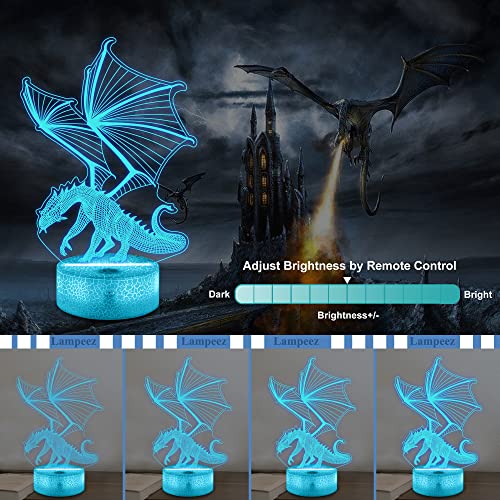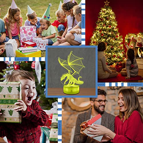 Lampeez - مصباح ليلي وهمي ثلاثي الأبعاد للأطفال بتصميم تنين، مع 16 لونًا متغيرًا مع جهاز تحكم عن بعد، ديكور غرفة نوم الأطفال كهدية للكريسماس وأعياد الميلاد للأولاد والبنات من لامبيز