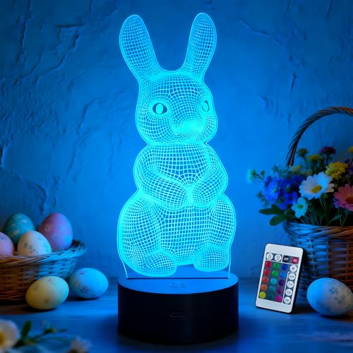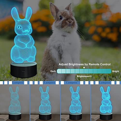 Lampeez - لامبيز مصباح ليلي ثلاثي الابعاد على شكل ارنب للاطفال، 16 لون متغير مع جهاز تحكم عن بعد، ديكور غرفة نوم الاطفال كهدية عيد ميلاد للاولاد والبنات، متعدد الألوان