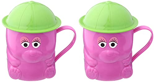 Lamsa Plast - طقم مجات بلاستيك شكل دبدوب من لمسة بلاست، قطعتين - فوشيا واخضر , 150 مل، الوان متنوعه، 2