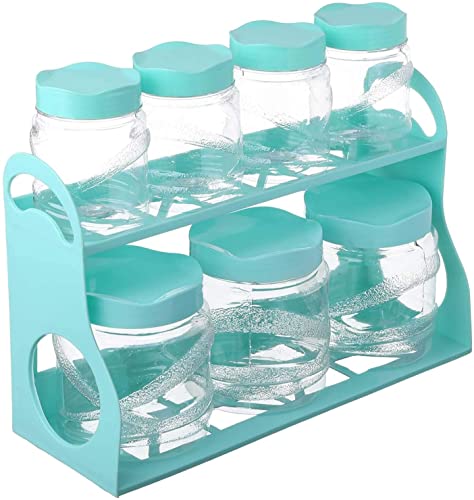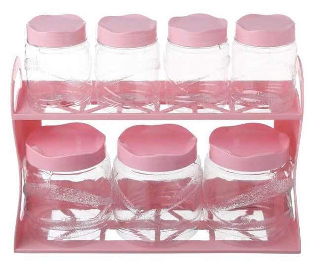 Lamsa Plast - مجموعة برطمانات بلاستيك بغطاء وحامل من لمسه بلاست - متعدد الالوان ، 7 قطع