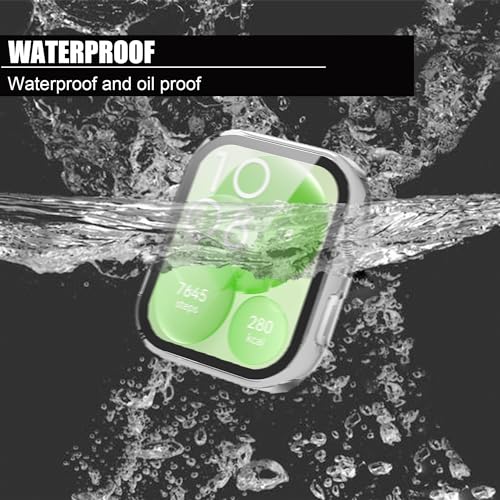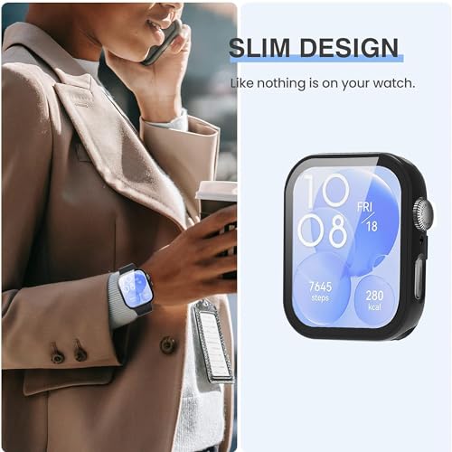 Lamshaw - جراب متوافق مع ساعة هواوي فيت 3 لامشاو صلب من البولي كربونات شاشة حماية 3-1.8 بوصة اسود + شفاف