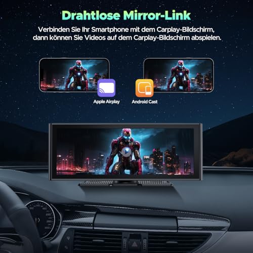 - راديو سيارة لاسلكي محمول مع اندرويد / اي او اس ميرور لينك: تتيح لك ميزات ابل اير بلاي (اي او اس) واندرويد كاست (اندرويد) لشاشة كاربلاي عكس تطبيقات جهازك لاسلكيًا على شاشة HD مقاس 9 انش. لا تعكس هذه الوظيفة التنقل والموسيقى والوظائف الأخرى لهاتفك فحسب، بل تعكس أيضًا الفيديو الذي يتم تشغيله بواسطة هاتفك.
