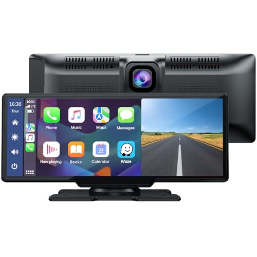LAMTTO - ستيريو سيارة لاسلكي لآبل كاربلاي 23 سم كاميرا داش 2.5K كاميرا احتياطية 1080P شاشة لمس محمولة ونظام تحديد المواقع GPS، مستقبل ستيريو للسيارة مع بلوتوث ايربلاي AUX/FM، جوجل، سيري من لامتتو