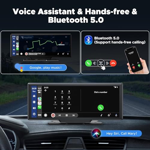 - 🚗التحكم الصوتي الذكي عبر سيري ومساعد جوجل: يسمح لك الميكروفون المدمج الواضح بشاشة آبل كاربلاي اللاسلكية بالرد على الهاتف أثناء القيادة، دون الحاجة إلى حمل هاتفك طوال الوقت. حيث يمكنك إرسال أوامر صوتية للوصول إلى المساعد الشخصي سيري أو مساعد جوجل، مثل "تشغيل الموسيقى"، و"نظام الملاحة ونظام تحديد المواقع GPS" والمزيد، وهو سهل الاستخدام للغاية.