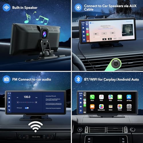 - 🚗 كاربلاي لاسلكي وأندرويد أوتو: يتوافق ستيريو السيارة المحمول هذا مع وظائف آبل كاربلاي وأندرويد أوتو. يمكنك ببساطة الدخول إلى سيارتك وسيتصل هاتفك الذكي تلقائيًا بشاشة كاربلاي للسيارة؛ من خلال شاشة كاربلاي، يمكنك الوصول إلى تطبيقات هاتفك الذكي والخرائط والموسيقى ومقاطع الفيديو وغيرها من الميزات، بالإضافة إلى استخدام الصوت عبر سيري أو مساعد جوجل للتحكم في شاشة تشغيل السيارة.