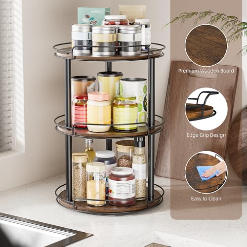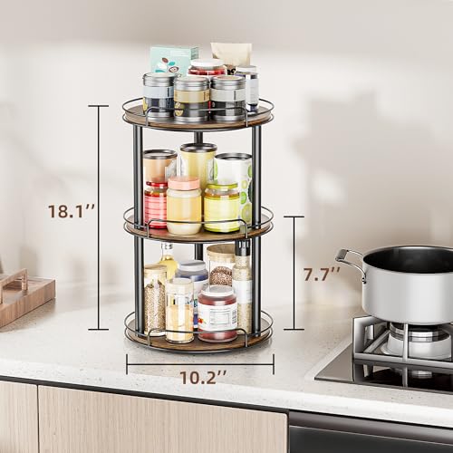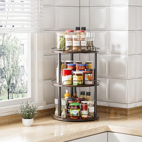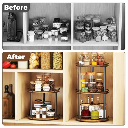 LAMU - منظم خشبي ليزي سوزان دوار 10 انش للخزانة، منظم رف توابل ليزي سوزان من 3 طبقات للمطبخ وسطح الطاولة وخزانة المؤن والحمام من لامو