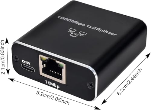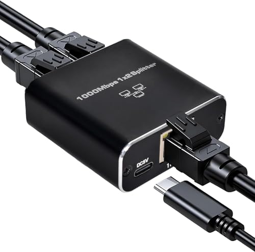 Generic - موزع شبكة LAN من 1 الى 2 بسرعة 1000 ميجابت لكل ثانية - محول شبكة جيجابت بمنفذين نوع سي للكمبيوتر والموزع والراوتر وجهاز فك التشفير والتلفزيون الرقمي