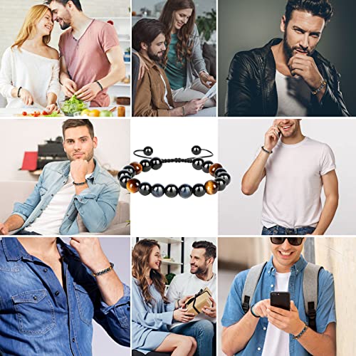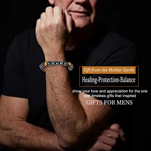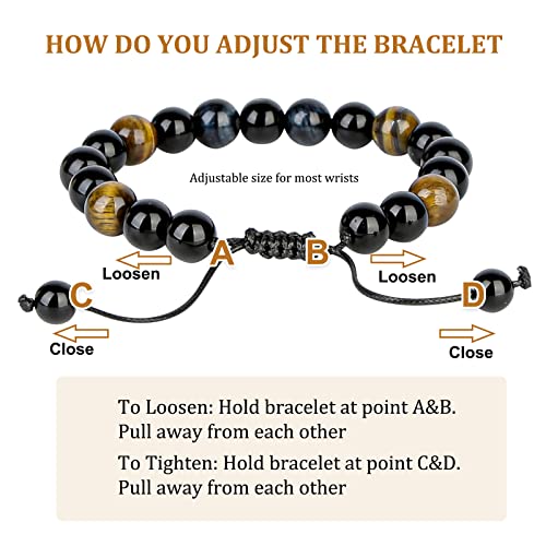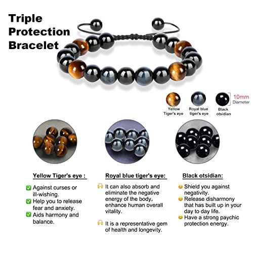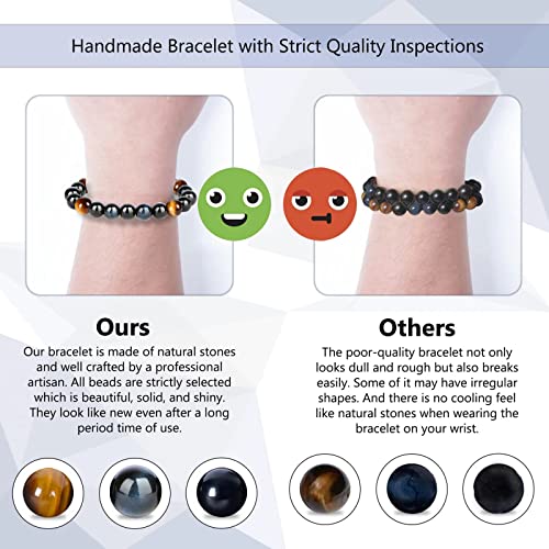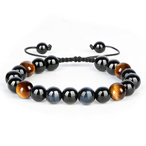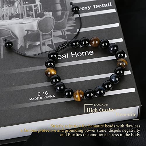 LANCAIFU - سوار حماية ثلاثي من الزجاج البركاني للرجال والنساء اساور مصنوعة يدويا خرز 8 ملم للنساء والرجال كريستال مجوهرات يجلب الحظ والسعادة