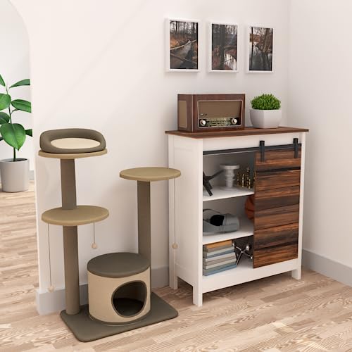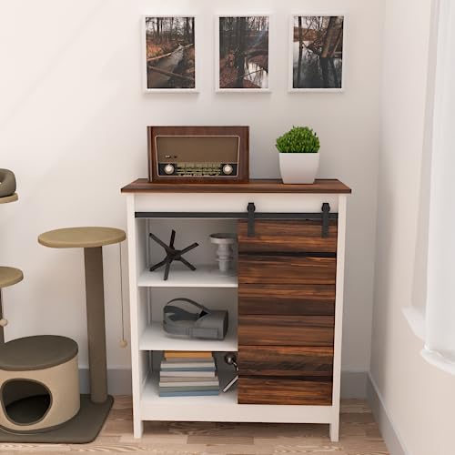 Landia Home - خزانة بار القهوة بتصميم ريفي عصري مع باب بنمط حظيرة منزلق من لانديا هوم، خزانة مميزة، خزانة تخزين باب الحظيرة للمدخل، وغرفة المعيشة، والحمام، والمطبخ، لون أبيض