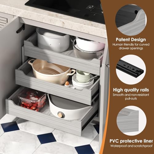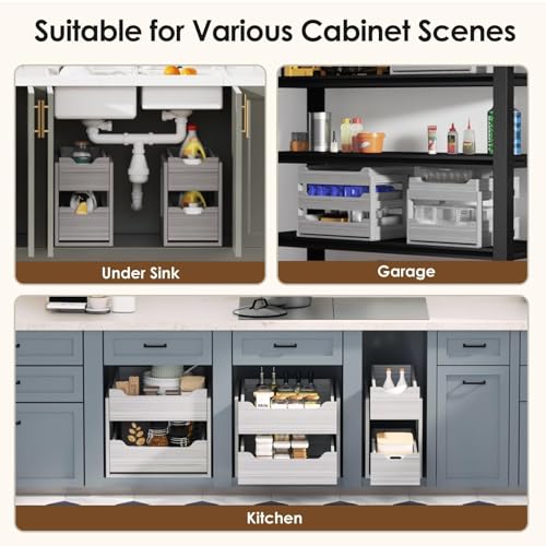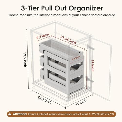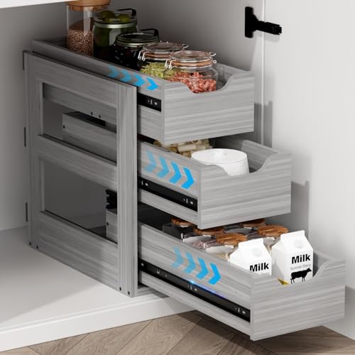 Landmok - منظم خشبي قابل للسحب بارتفاع قابل للتعديل من لاندموك، 9.7 انش عرض × 21.5 انش عمق، ادراج سحب سلسة للخزائن من 3 طبقات لخزائن المطبخ تحت الحوض، رمادي
