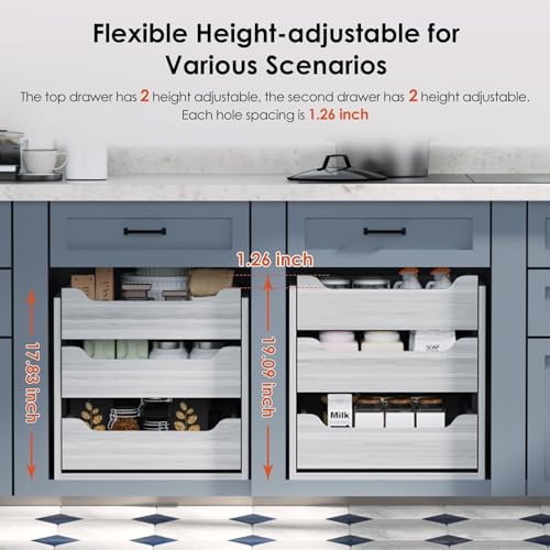 - تصميم بارتفاع قابل للتعديل - تتميز أدراج الخزانة القابلة للطي المكونة من 3 طبقات بخيارات ارتفاع قابلة للتعديل على كل من الطبقتين العلوية والثانية، كل منها يحتوي على فتحتين مثقوبتين مسبقًا لإجراء تعديلين. قم بتخصيص ارتفاع المنتج وفقًا لاحتياجاتك المحددة، بدءًا من 17.8 انش على الأقل إلى 19.1 انش كحد أقصى، مما يضمن ملاءمة مثالية لمساحات الخزانة المختلفة