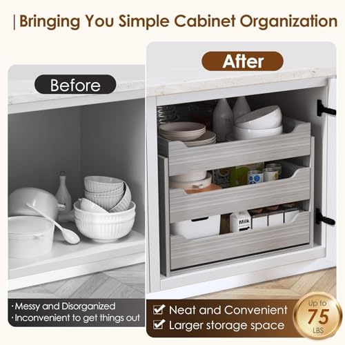 - تصميم صديق للإنسان - يرجى التأكد من أن أبعاد خزانتك العميقة لا تقل عن 11 انش عرضًا × 22.5 انش عمقًا × 19.5 انش ارتفاعًا. تعزز المقابض المنحنية على الأدراج المنزلقة للخارج لخزائن المطبخ سهولة الاستخدام والجمال. مع سعة وزن قوية تصل إلى 75 باوند، توفر المسارات المنزلقة بسلاسة حركة سلسة وبدون مجهود. يضمن التصميم المريح كلاً من الوظائف والجاذبية البصرية الممتعة