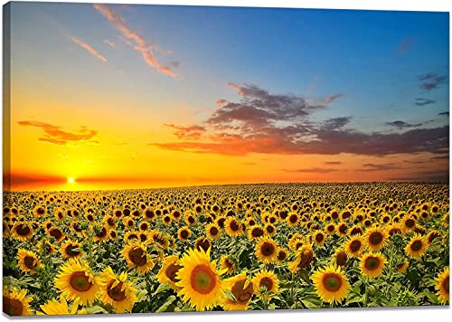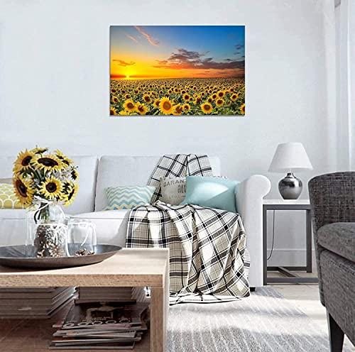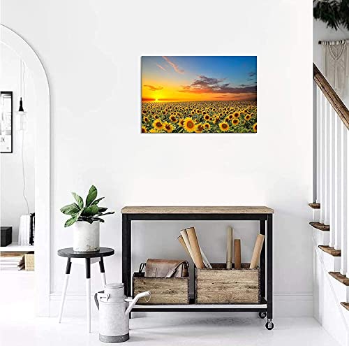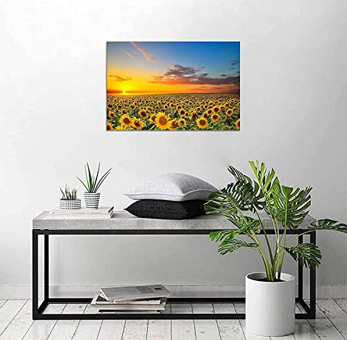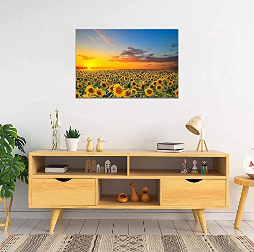 SKASNFAI - بوستر رسم المناظر الطبيعية بتصميم عباد الشمس، لوحة فنية للتعليق على الحائط، صورة فوتوغرافية لجلب الحظ السعيد، لوحة ديكور لغرفة النوم مع اطار خشبي