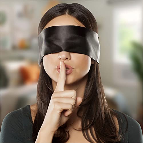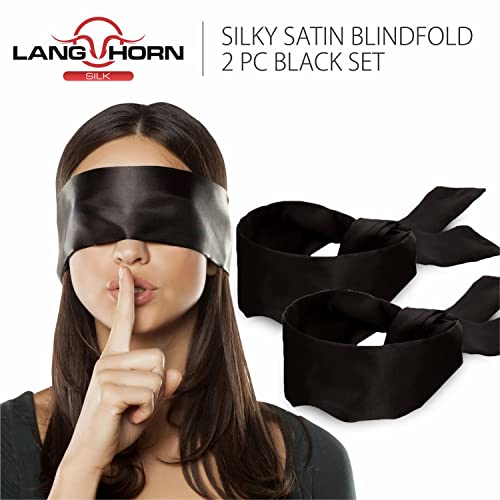 Lang Horn - قناع عين من الساتان الحريري، قناع للنوم من الساتان الناعم الحريري، مناسب لعيد الحب من لانج هورن، مقاس 1.55 م، لون أسود، عبوة من قطعتين
