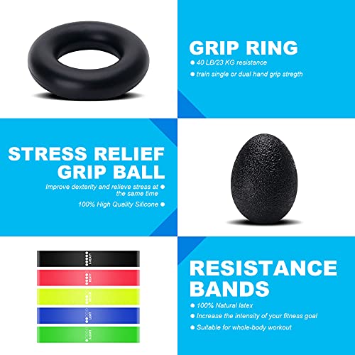 - 💪【عبوة قيمة】مجموعة معدات تمارين القوة مكونة من 10 قطع، 1 × أداة تمرين قبضة اليد قابلة للتعديل، 1 × أداة لتقوية الأصابع، 1 × حلقة تمرين، 1 × كرة للقبض، 1 × أداة تمرين لأصابع الساعد، 5 × أشرطة مقاومة. هذه المنتجات تساعدك على تقوية وتمرين يديك وأصابعك والمعصمين والمرفقين والجسم بالكامل.
