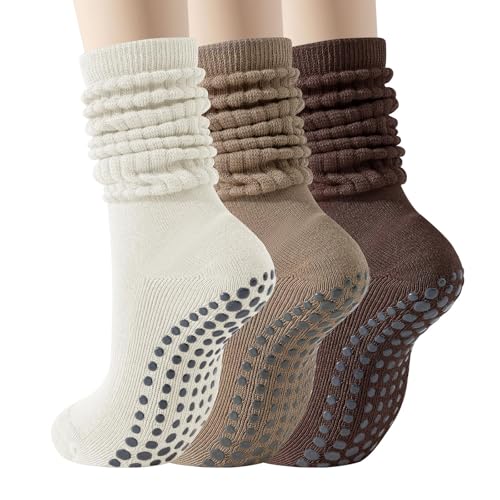Langthering - شرابات بيلاتس مع مقابض للنساء من لانجثيرينج®، 3 أزواج من شرابات اليوجا الطويلة غير القابلة للانزلاق