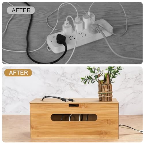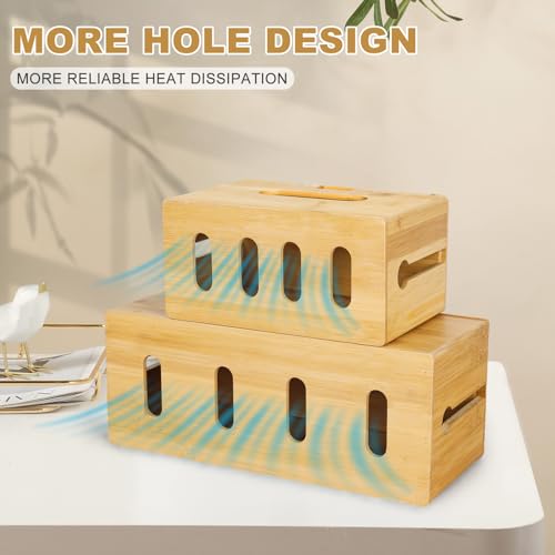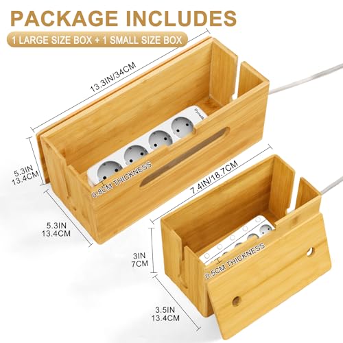 Lannvan - صندوق كابلات خشب مصنوع من الخيزران المستدام، صندوق كابلات مكتب لإخفاء الكابلات المتشابكة، صندوق تجميع الكابلات، صندوق تنظيم وإدارة الكابلات، صندوق مقبس كبير وصغير من لانفان، مجموعة من قطعتين