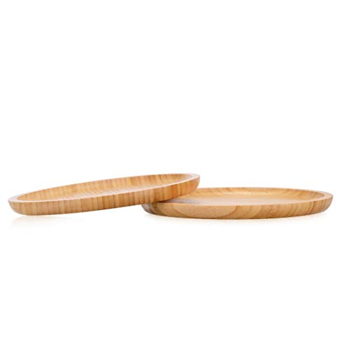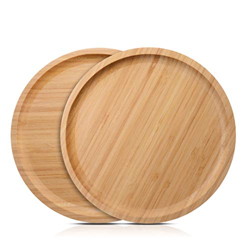 LANSEYQO - قطعتان من صحن نبات الخيزران، صواني حصى دائرية للنباتات الداخلية، مناسبة لـ 8 انش، صحن كبير للاستخدام الداخلي (20 سم)