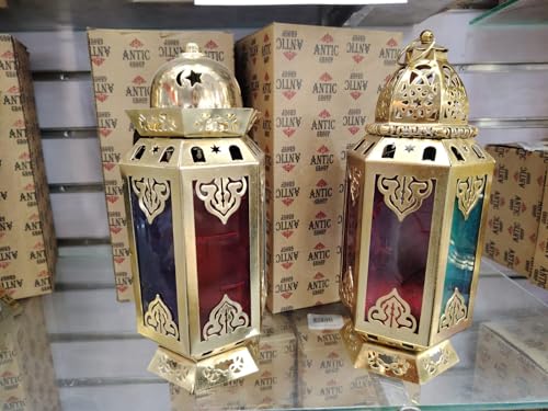 LC - فانوس فوانيس معدن رمضان لون ذهبي مرفق اضاءة تعمل بالبطاريات