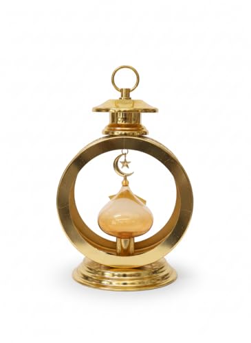 Generic - فانوس استانلس استيل ذهبي، معدني، تصميم إسلامي مع هلال ونجمة،