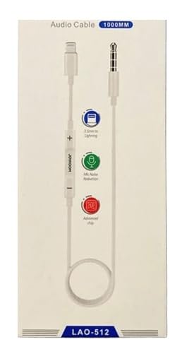 Generic - كابل صوت عالي الجودة موديل LAO-512 بتقنية تقليل الضوضاء - 3.5 ملم - بطول 1 متر-ابيض