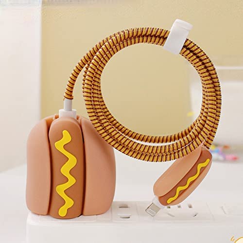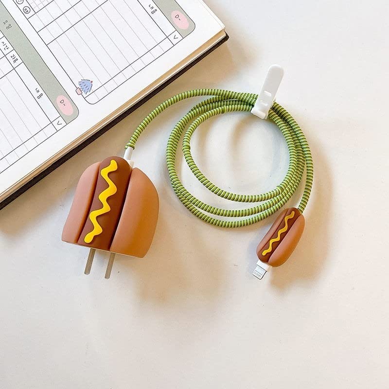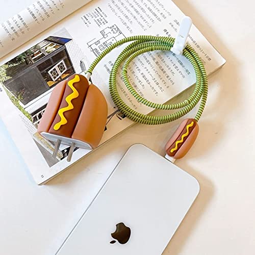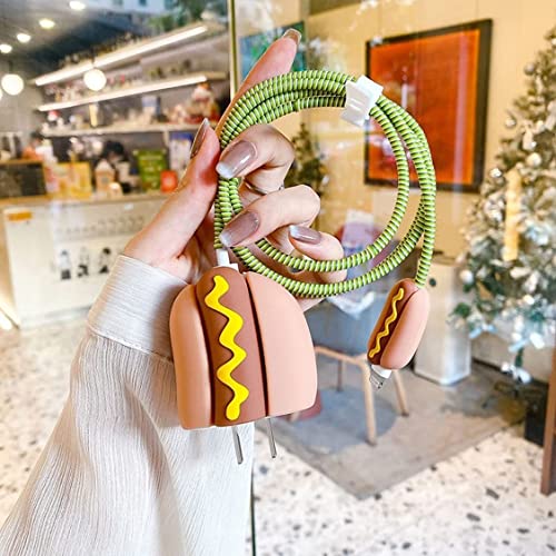 Laprite - جراب حماية بتصميم كرتوني ثلاثي الأبعاد من لابريت لموبايل ايفون 14 13 12 11 برو ماكس 18 وات 20 شاحن كيبل شحن سريع حافظة بيانات لايتنينج لطيف لشاحن هوت دوج سيليكون