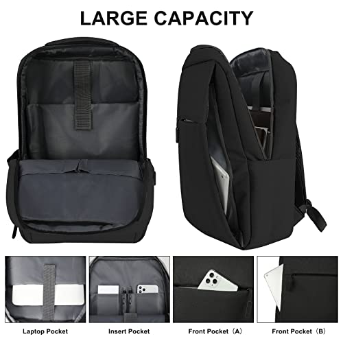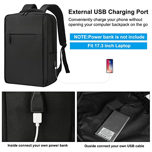 Lubardy - شنطة ظهر للاب توب للرجال والنساء مع جيب كمبيوتر مقاس 17.3 انش، شنطة ظهر مقاومة للماء مع منفذ شحن USB - اسود