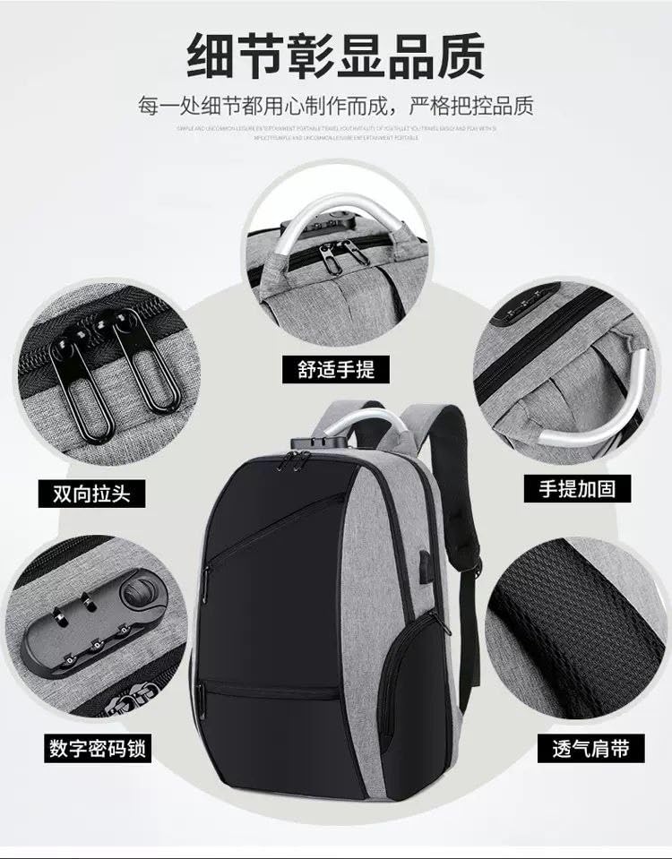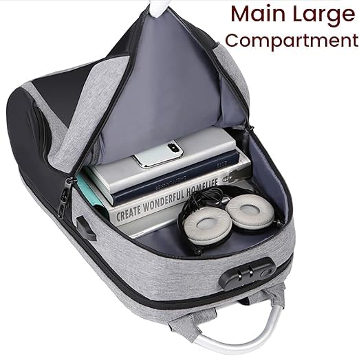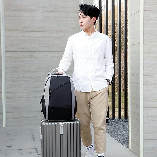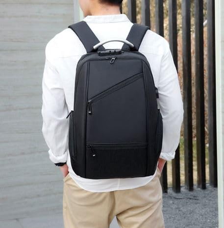 Generic - شنطة ظهر لاب توب مناسبة للسفر والتخزين مزودة بمنفذ شحن بتصميم بسيط و مثالية لحمل الكتب للرجال