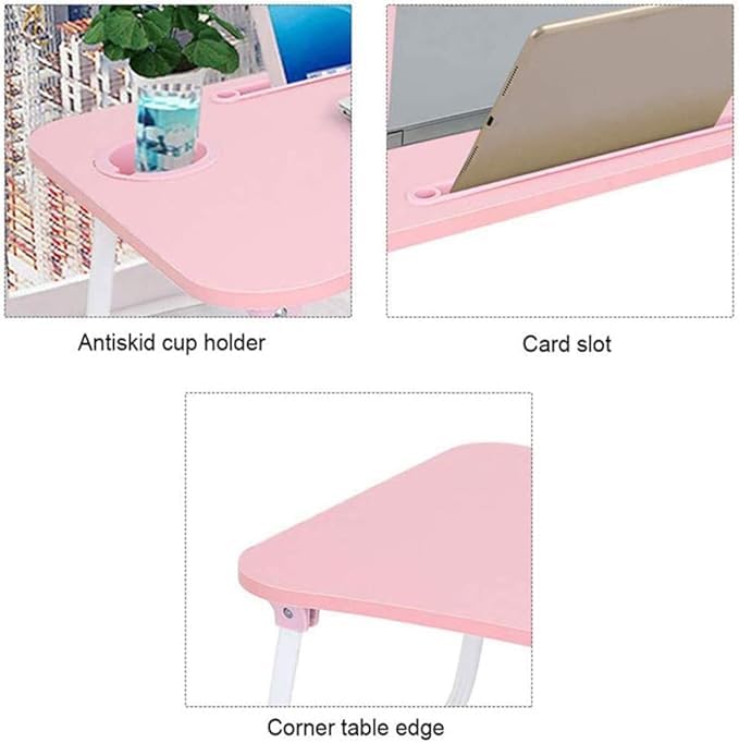 Generic - طاولة سرير للاب توب، مكتب محمول قابل للطي، مع حامل أكواب ومساحة للتابلت، متعددة الاستخدامات، 60×40×28 سم، خشب حبيبي صلب، متوفرة بألوان متعددة
