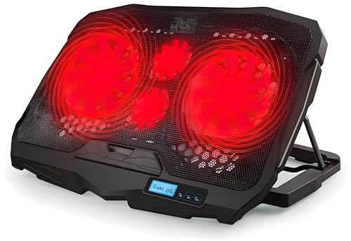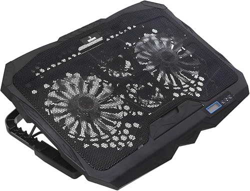 Generic - مروحة تبريد لابتوب بـ 4 مراوح عالية السرعة – شاشة LCD – إضاءة LED – تعمل عبر USB – تصميم مريح قابل للتعديل – تدعم حتى 15.6 بوصة – أسود – GT-18