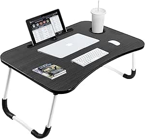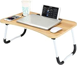 Generic - مكتب لابتوب للسرير، طاولة لابتوب قابلة للطي مع حامل اكواب، حامل نوت بوك محمول قابل للتعديل، طاولة لابتوب للسرير قابلة للطي (بيج)