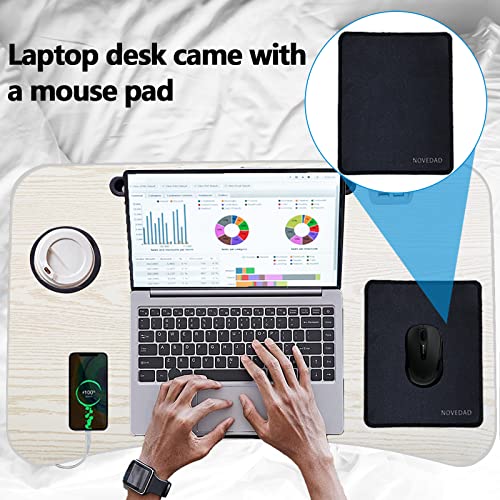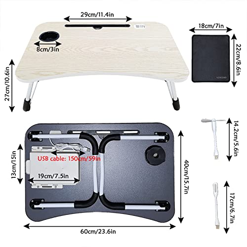 NOVEDAD - مكتب لاب توب قابل للطي، صينية سرير بمنفذ شحن USB/ حامل أكواب/ درج تخزين، حامل نوت بوك متعدد الوظائف للعمل والقراءة (أبيض)