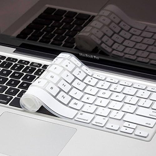 Generic - جراب لوحة مفاتيح متوافق مع ماك بوك اير وبرو 13/15/17 بوصة، جراب لوحة مفاتيح إنجليزي بتصميم أمريكي مع غطاء شريط، جراب حماية من السيليكون رفيع للغاية، أبيض