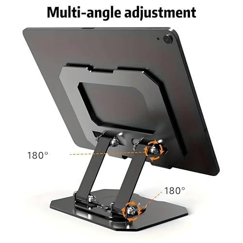 Generic - حامل لاب توب محمول من الألومنيوم قابل للتعديل مع دوران 360 درجة بتصميم قابل للطي للكمبيوتر المكتبي والتابلت والاي باد والنوت بوك للاستخدام في المنزل أو السرير أو المكتب أو السيارة