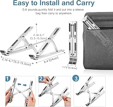 - صغير وسهل الحمل: تصميم مبتكر محمول ومطوي - يتميز حامل اللاب توب هذا بتصميم مطوي مبتكر، حيث يمكن طيه ليصبح بحجم 23.9 × 4.4 سم، يأتي معه شنطة تخزين محمولة لسهولة الحمل والتنقل به في أي مكان.