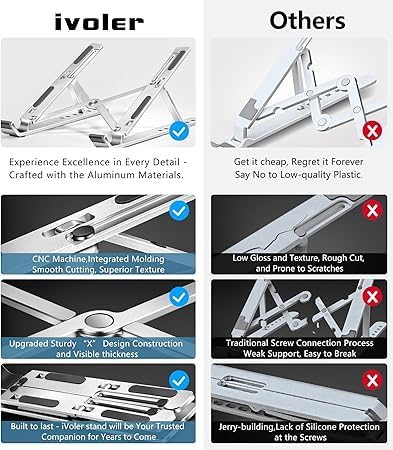 - التوافق: ستاند للاب توب والتابلت يدعم معظم الأجهزة بمقاس من 10 إلى 15.6 بوصة. ماك بوك وثينك باد وسيرفيس وكروم بوك واي باد برو وغيرهم.