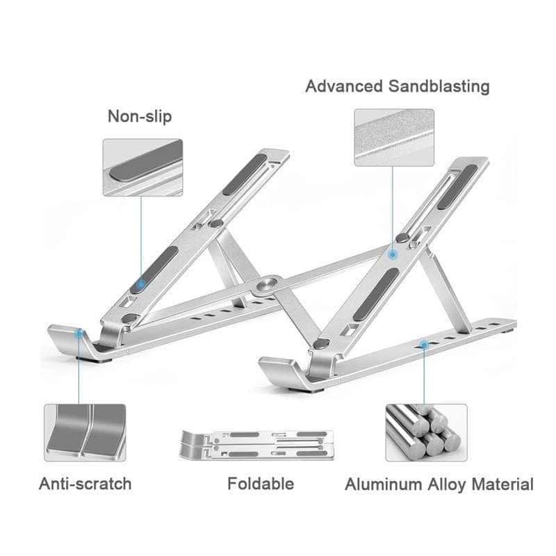 Generic - حامل ومسند لاب توب – معدن مقاوم للصدأ مع سيليكون مضاد للانزلاق – ارتفاع قابل للتعديل – متعدد الاستخدامات