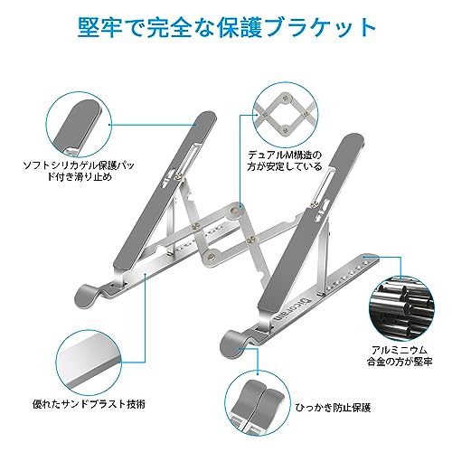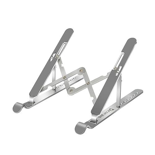 Dicorain - حامل لاب توب وتابلت وموبايل وكمبيوتر: مع زاوية قابلة للتعديل 7 درجات ووزن خفيف جدًا، قابل للطي بتصميم مزدوج على شكل M للثبات، مصنوع من خليط الألومنيوم، مناسب لأجهزة اللاب توب والتابلت