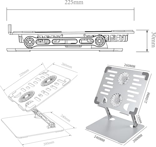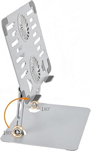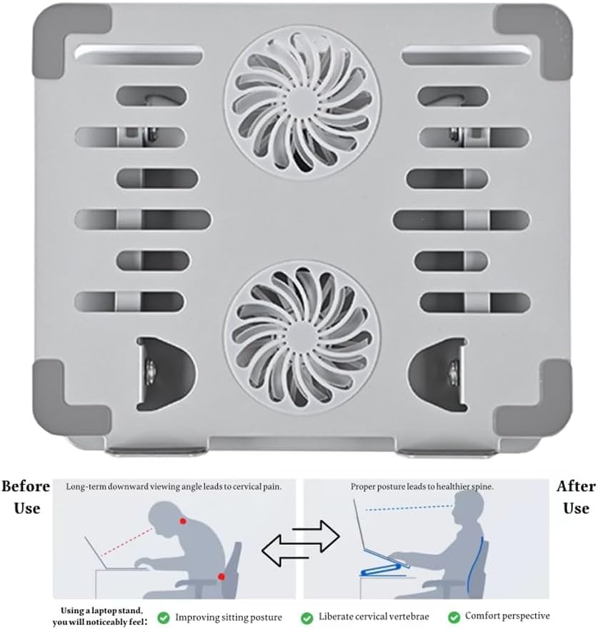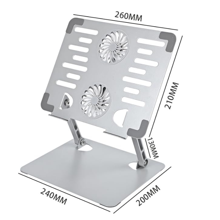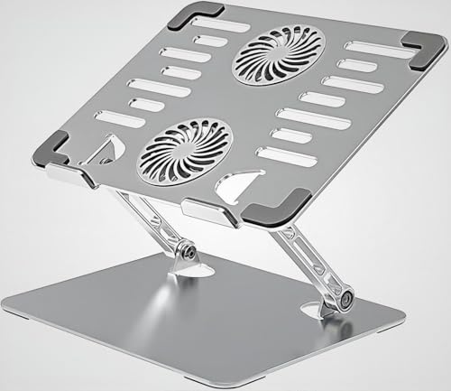 Generic - حامل لاب توب بمروحة تبريد مزدوجة – مصنوع من خليط معدني من الألومنيوم، مع قاعدة معدنية قوية ومستقرة،، قابل للطي، وصلة USB-Typ C، ارتفاع قابل للتعديل حتى 18 بوصة "متوافق مع MacBook وPC - رمادي.