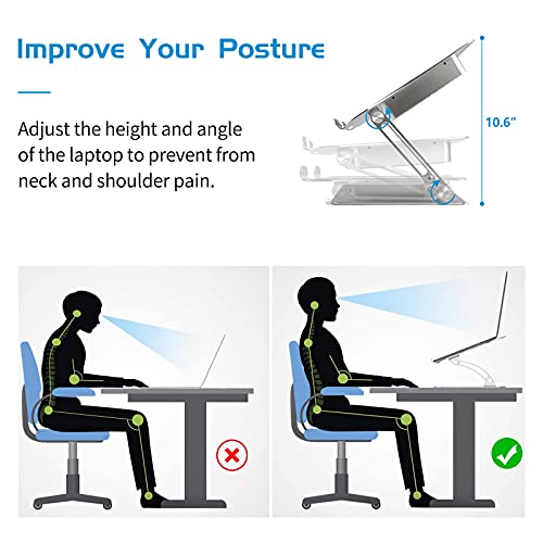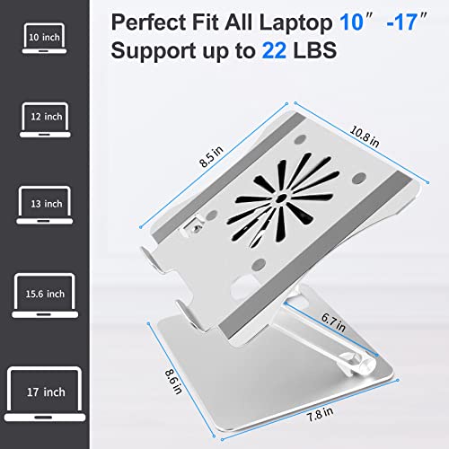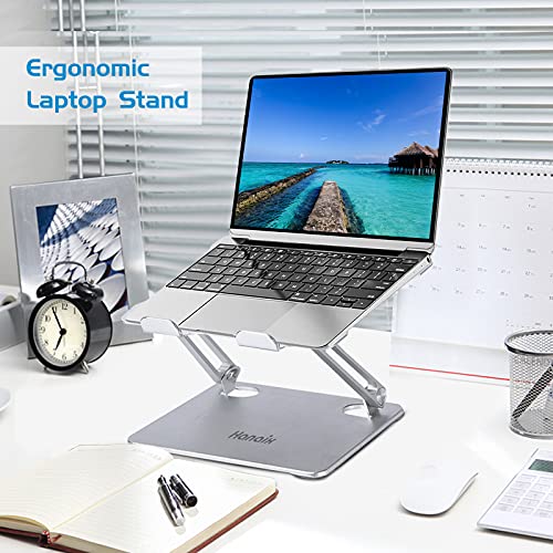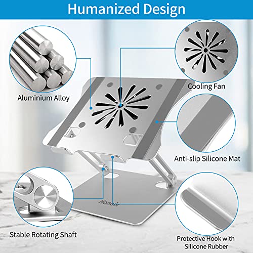 Hanaix - حامل لاب توب مع مروحة، حامل لاب توب قابل للتعديل من هنايكس مع مروحة فائقة الهدوء، حامل لاب توب من الالومنيوم مريح متوافق مع ماك بوك مقاس 10-17.3 بوصة، ديل، لينوفو، اتش بي، حامل لاب توب