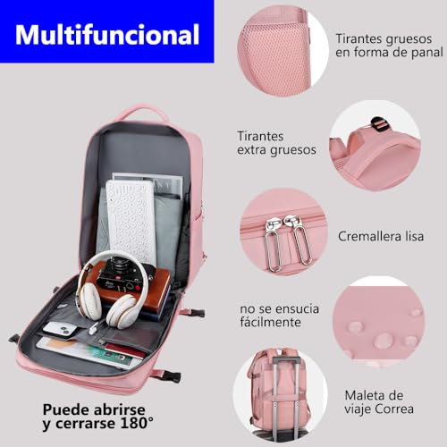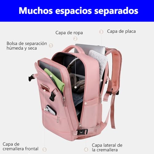 VictorFit - شنطة ظهر للاب توب للسفر معتمدة من الطائرة للرجال والنساء مع منفذ للشحن USB، سعة 35 لتر معتمدة من إدارة أمن النقل، مقاس 40 سم، (لون رمادي)