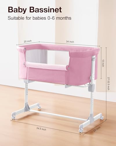 Larex - سرير أطفال محمول 3 في 1 مع مرتبة وعجلات مريحة بـ 7 ارتفاعات قابلة للتعديل وسهلة الطي لحديثي الولادة من لاريكس، لون وردي