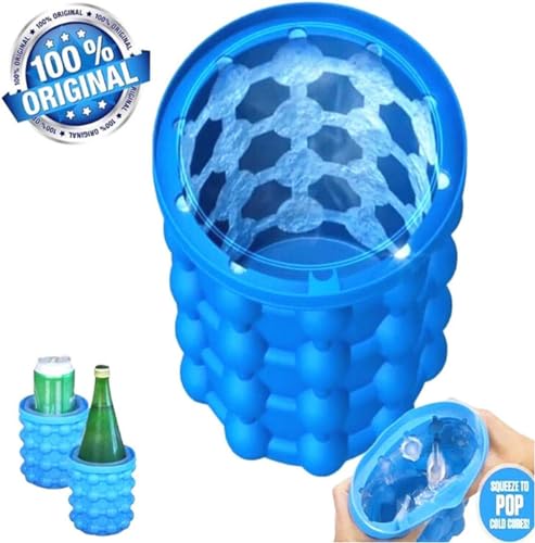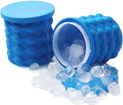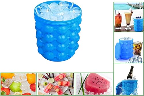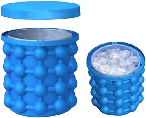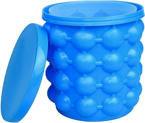 Dachangshund - دلو ثلج كبير 2 في 1 من السيليكون مع غطاء، صانع مكعبات ثلج من السيليكون، صانع مكعبات ثلج محمول من السيليكون (ازرق)
